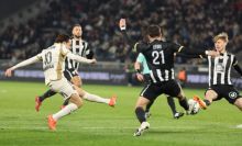 du gauche. Son ballon est dévié par le genou de Camara et prend Zinga à contre-pied.