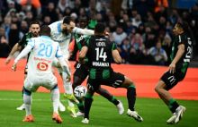 Fofana qui s'infiltre dans la surface de réparation entre les défenseurs phocéens puis sa frappe du pied droit trompe